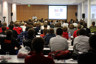 The more than 80 participants gained insight into a variety of subjects, ranging from tyres, kinematics, multi-body simulation, and the interaction between suspension and frame to steering, data acquisition, set-up and testing. Besides this very interesting programme there was ample time for the participants to visit the EuroMold trade fair.