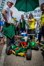 The sponsors had only four days to conceptualize, build and test an individual and innovative transportation system from an identical basic vehicle (Bobby Car). Todays acceleration put their technical solution to the test. After a driver briefing and thorough tech inspection, all cars lined up on the start-finish line to race.