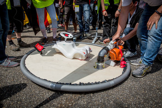 In the Formula Student Germany 2015 Sponsor Challenge (FSGS) event sponsors have to design, construct and race a customized vehicle. The basic vehicle was provided by FSG. FSGS has its own rules: everything is allowed, particularly help from teams and third parties is very welcome. Use of explosives require scrutineering and of course a scrutineering order.