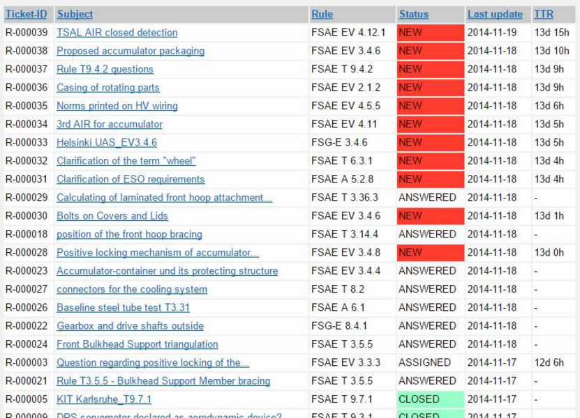 In the form of an Issue-Tracking-System the members of registered teams can make an inquiry and it will be sent directly to the expert of the subject in question.