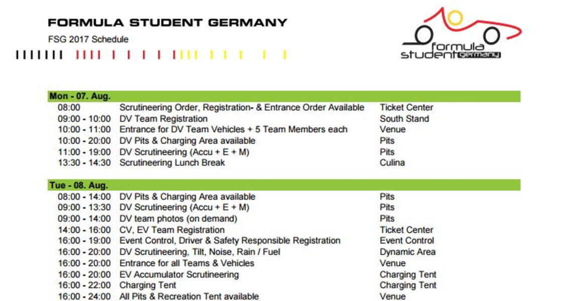 In order to integrate the new driverless class some time slots had to be adapted. So among others the team registration and scrutineering for the driverless class will already start on Monday, the award ceremony part I will take place on Saturday.