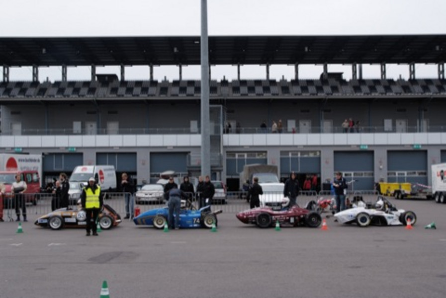 Everyone that appeared at Formula Student Germany 2009 in a so-called red or white shirt was invited to come to the Lausitzring with or without his/her Formula Student car. Of course running a Formula Student car requires a team, and thus per participating car four extra team members were allowed to come along. All in all, 14 cars and about 80 participants gathered in the course of Friday in the pitboxes. There was the possibility to try one another’s car(s), and everyone registered for the event was allowed to drive. This way a great weekend of driving was guaranteed for all.