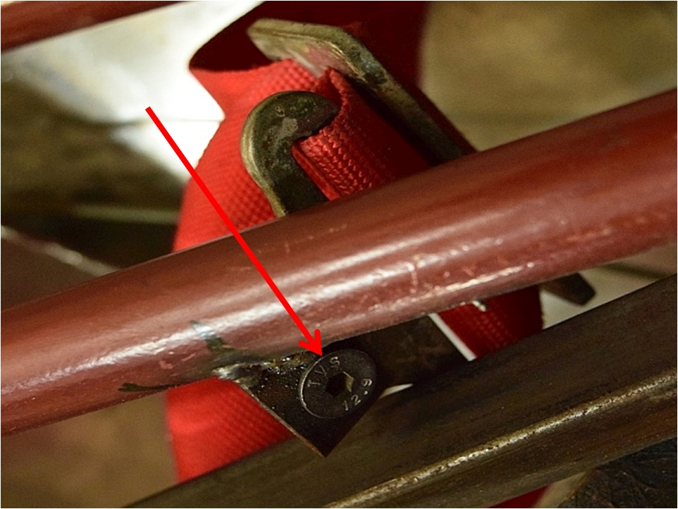 The first illustration shows a countersunk allen screw anchoring a seatbelt harness.