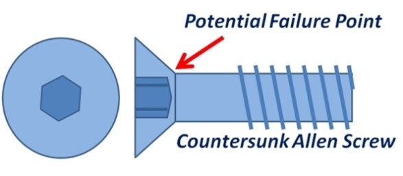 The next illustration shows a countersunk allen screw used to mount a brake caliper.