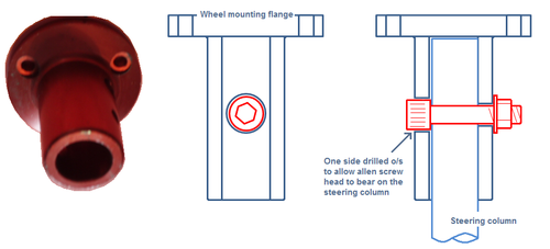 I am not recommending this, but this was Pat’s karting solution (back when he raced). If the kart had a tubular column (most do) Pat turned up a 5 cm (2”) long aluminum plug for the top of the shaft.