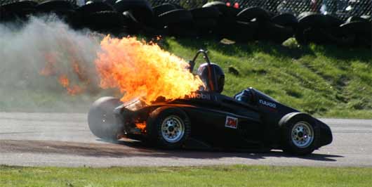 Therefore, it is critical that the team members positioned at the perimeter of the track are always watching the car for any sign of fire.