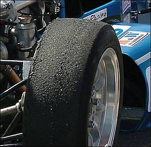 This picture shows a tyre that has been overheated after very little use at Formula Student 2005. Yes, it is possible to choose tyres that are too soft!