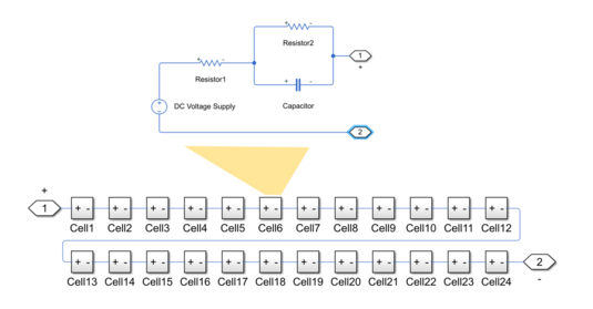 Another important step while modeling a battery is choosing the appropriate parameters of the physical blocks so that it responds as similarly as possible as a physical battery cell. One possible way to determine these parameters is by performing parameter estimation where we define the design requirements, and cost functions to optimize the model parameters. To know more about how we have used this technique to estimate the battery parameters, please check out this video titled, “Modeling Batteries Using Simulink and Simscape.↗”